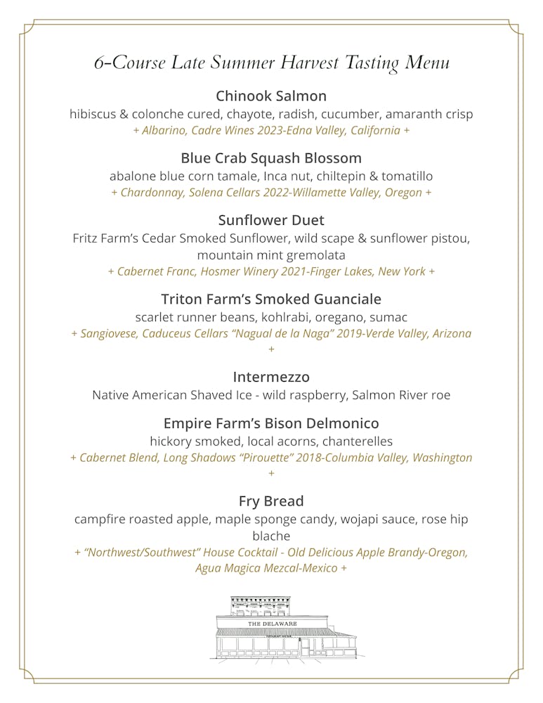 Join us Wednesday, September 11th at 6 pm for an incredible 6-course Late Summer Harvest Tasting menu presented by Chef Elliott Vogel at The Delaware Restaurant & Bar!
