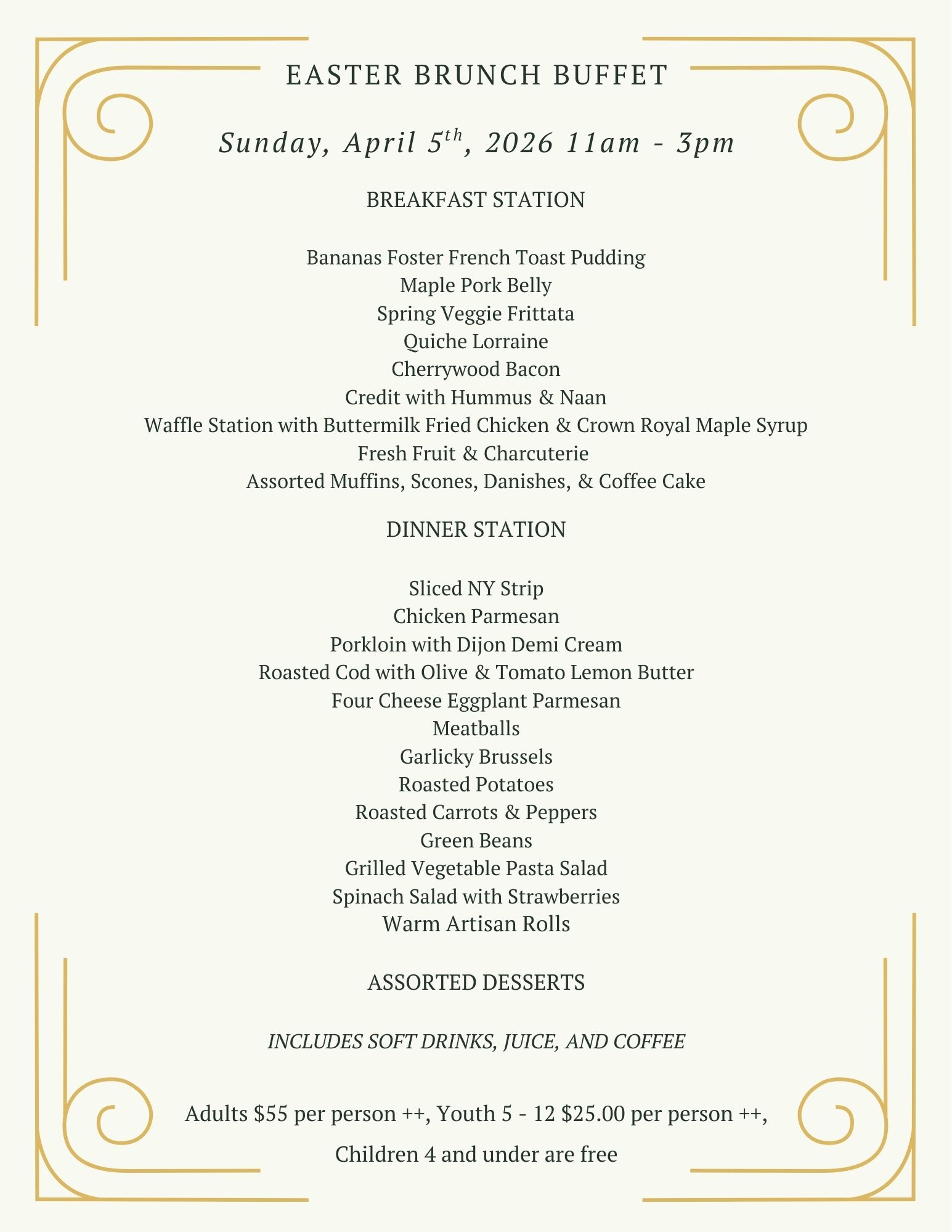Easter Brunch April 05, 2026 11:00 AM Join us Sunday, April 5th for our Annual Easter Brunch Buffet! Make Reservations Here