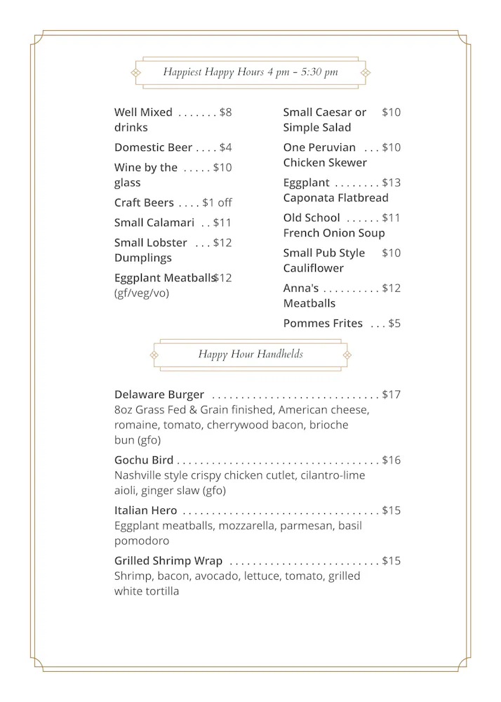 Menu selections may contain allergens. If you have a food allergy or a special dietary requirement, please inform a member of our staff. The Delaware is not a gluten-free restaurant + despite special care in the preparation of your meal, we cannot guarantee that any menu item is completely gluten-free. Consuming raw or undercooked meats, poultry, seafood or shellfish may increase your risk of foodborne illness