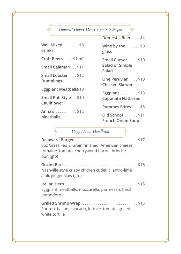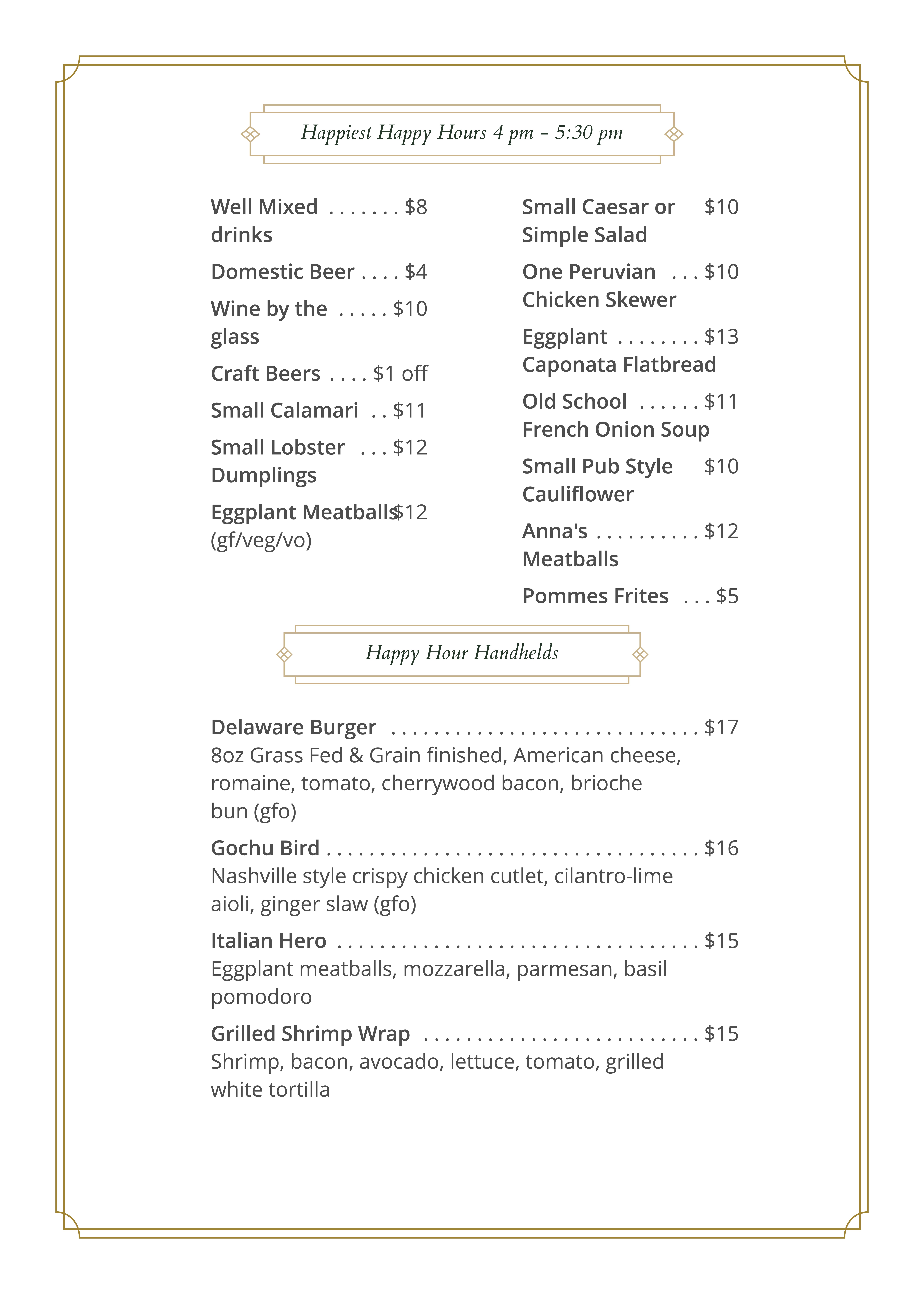 We are now open Happy Hour from 4 pm - 5:30 pm!