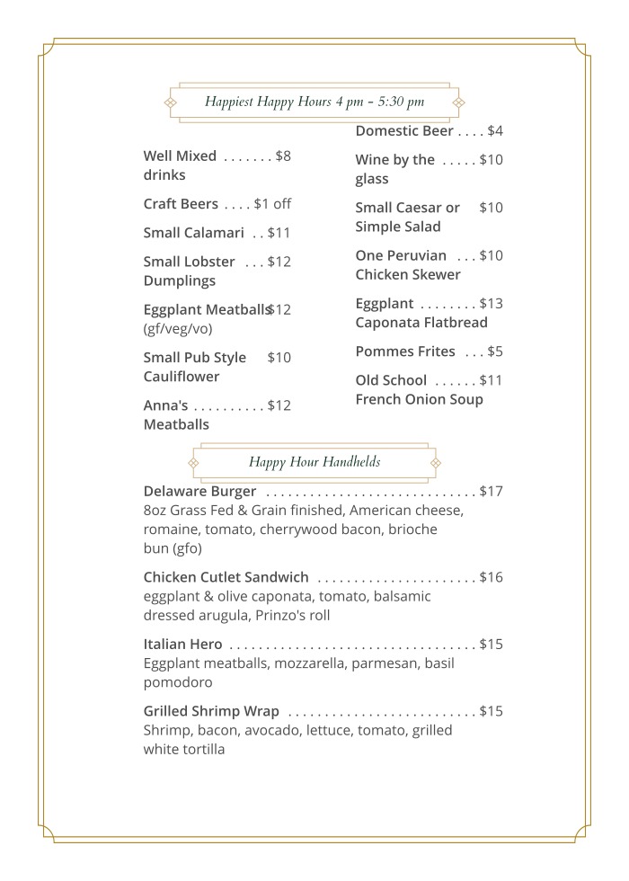 Menu selections may contain allergens. If you have a food allergy or a special dietary requirement, please inform a member of our staff. The Delaware is not a gluten-free restaurant + despite special care in the preparation of your meal, we cannot guarantee that any menu item is completely gluten-free. Consuming raw or undercooked meats, poultry, seafood or shellfish may increase your risk of foodborne illness